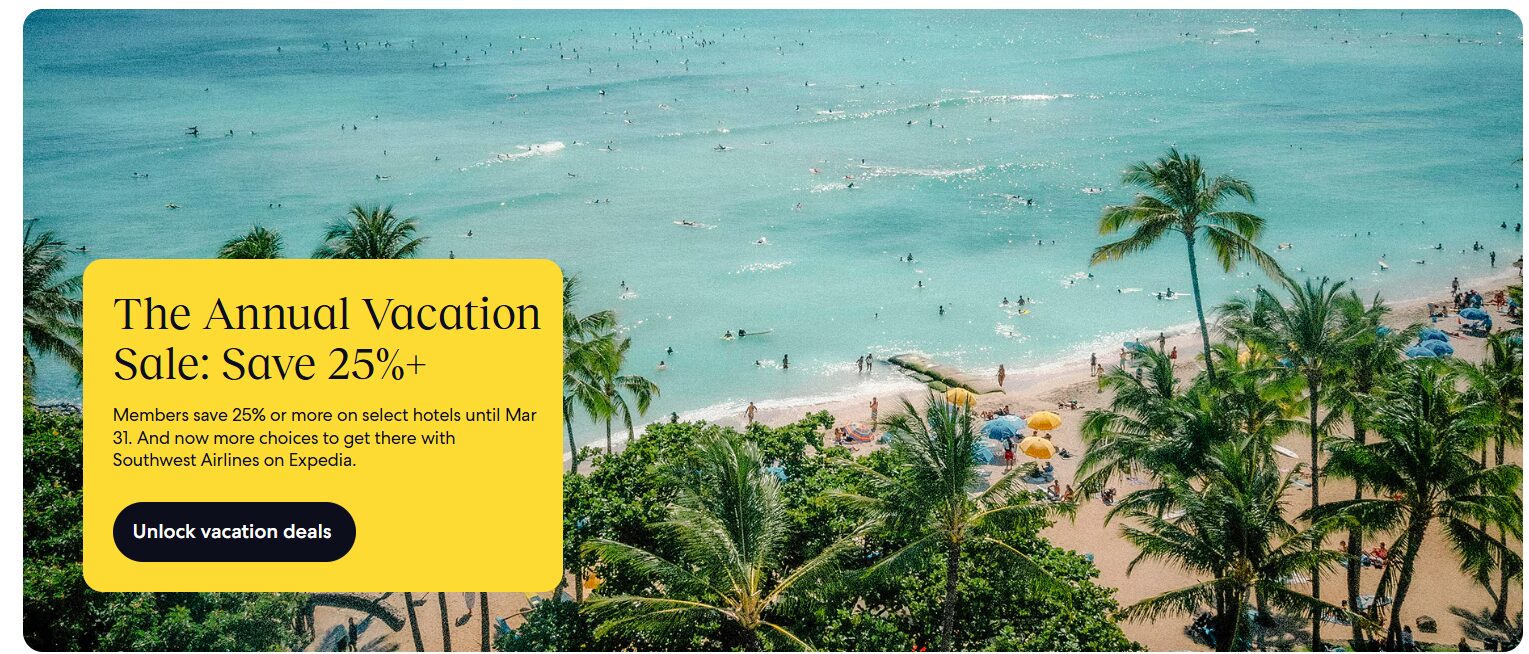 Expedia’s “One Key” loyalty program allows users to earn points across Expedia, Hotels.com, and Vrbo. Points can be redeemed for discounts on bookings, and members can receive exclusive deals and perks like free room upgrades or early check-in.