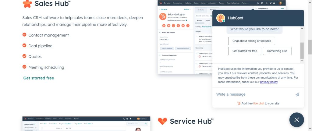 Next is the Sales Hub Starter plan. With this plan, you’ll get all the features of the Free CRM plus additional sales tools such as email sequences and meeting scheduling. It’s ideal for growing teams looking to improve their sales processes and close deals faster.